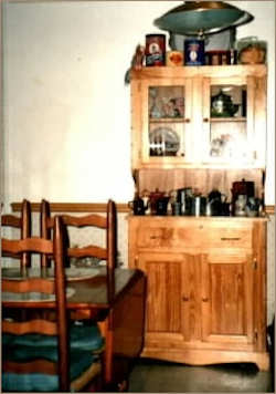 different woods and finish almost anyway one could imagine. From an owner: I would like to thank you for the beautiful stepback cupboard you built for us in 2002. I was wanting one when I contacted you. I drove to Lakemont and you showed me the original and I fell in love with it immediately. The size is plenty big to hold all of my china I inherited from my grandparents. We consider it a heirloom piece and our daughter has already declared it hers. Bill & Linda. Atlanta, Ga. |