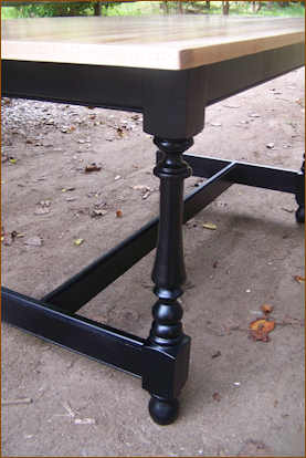 | The beautiful and one of a kind Lake Rabun Rrproduction Circa 1730 Tavern Table. We own the original table and have made it's reproduction available September 2013. It seats 6 comfortably for a dining table but has already found it's way as a desk in home offices and a longer version as a conference table in a commercial corporate office. It has a very pretty one of a kind unique leg that is Copy Righted to the owner of Period Farm Tables. |