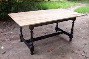 | Our Tavern Tables are our most popular tables. Our clients use them for dining room tables, home office desk, desk for their kids. They have beautifully hand turned antique reproduction legs, painted, stained, distressed or natural bases. The tops are made of the woods Pine, Ambrosia Maple, Curley Maple, Soft Maple, Cherry, Walnut and Oak. Click on the images to view larger versions. |